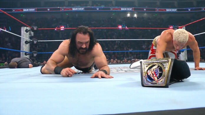 O momento decisivo ocorreu após McIntyre empurrar Rhodes contra o árbitro, deixando-o desacordado no ringue. Antes disso, o desafiante quase garantiu a vitória por contagem ao arremessar o campeão contra uma mesa do lado de fora do ringue.
