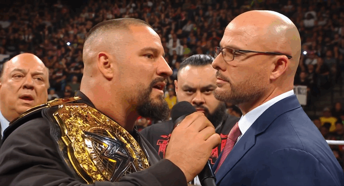 Durante o discurso, The Miz chegou a provocar os jogadores do Buffalo Bills, time da NFL, que estavam na primeira fila. Pouco depois, sua fala foi interrompida pela música de entrada de Randy Orton.