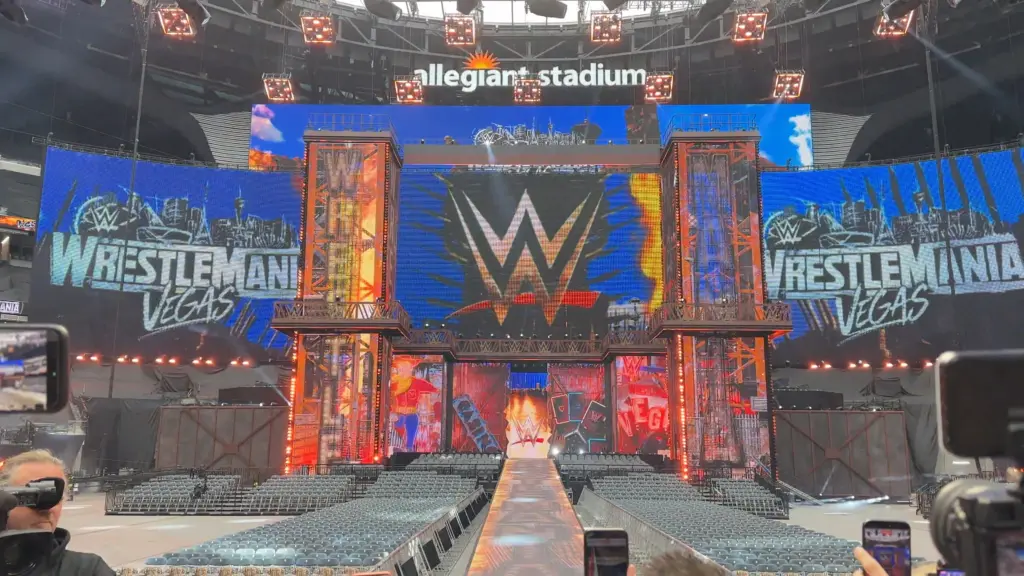 Após um vazamento de parte da stage da WWE WrestleMania 42 hoje mais cedo, agora já se tem o vídeo do palco completo do evento, publicado por jornalistas.