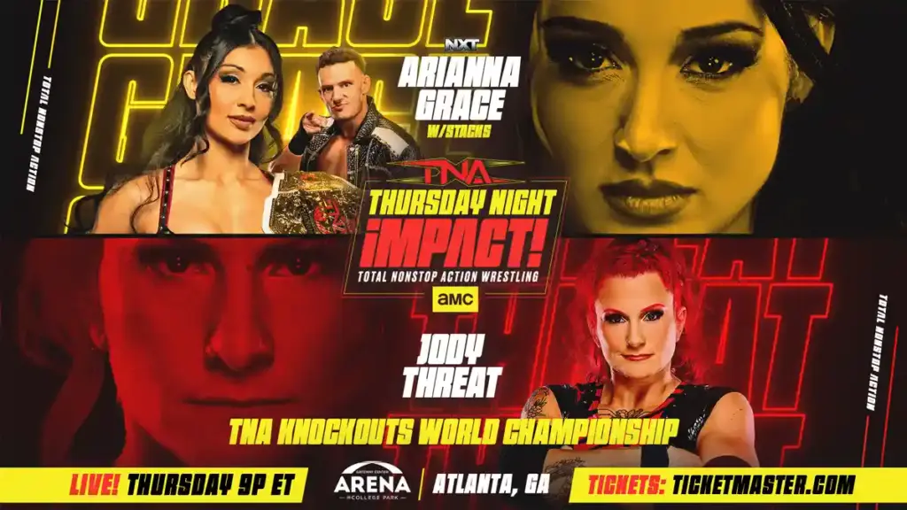 - Arianna Grace (c) c/ Channing “Stacks” Lorenzo vs. Jody Threat – TNA Knockouts World Championship Match;